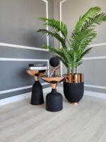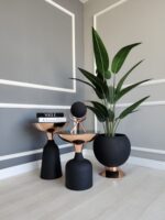 Lotus Yan Sehpa İkili Takım – Pütürlü Siyah & Rose