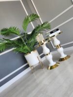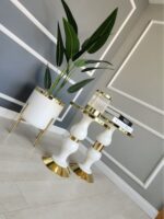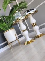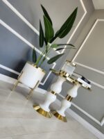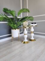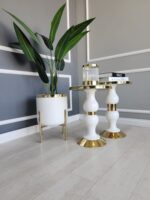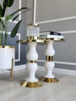 Mimoza Yan Sehpa İkili Takım – Beyaz & Gold