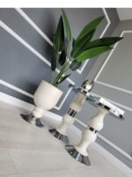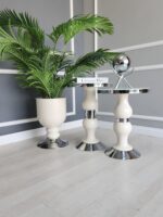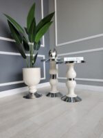 Mimoza Yan Sehpa İkili Takım – Krem Boya & Gümüş Kaplama