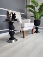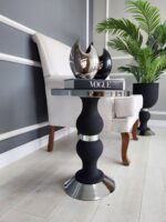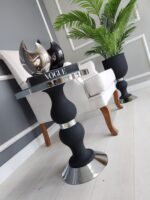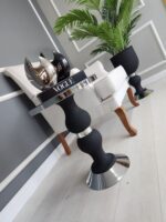 Mimoza Yan Sehpa Tekli – Pütürlü Siyah & Gümüş