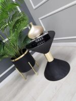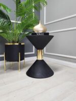 Zürih Yan Sehpa Uzun – Pütürlü Siyah & Gold